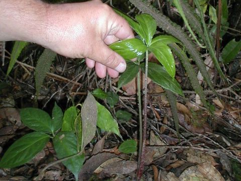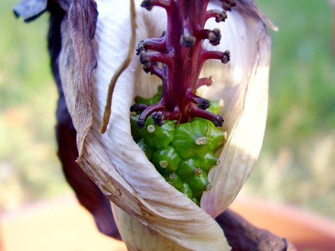 Arisema spec. "Gunung Tujuh" z Sumatry Arisema rosnąca na wysokości około 2400 m npm. Niedaleko jeziora Gunung Thuju (jezioro siedmiu gór): I ta sama roslinka kwitnąca już u mnie (3. lipca 2006):