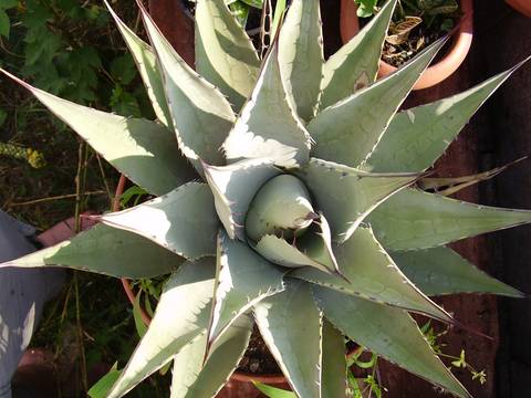 Agave spec. 1 A.parryi?)? Nie miałem nazwy tej roślinki, przypuszczam, że To A.parryi. Jest jednak bardzo ładna, pięknie kontrastuje szaroniebieski kolor liścia z długim i ciemnym kolcem na jego końcu.