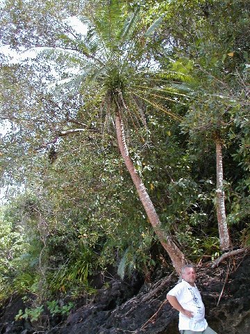 Roślina rosnąca na skałach tuż nad brzegiem morza. Nazwa zatem nie kłamie. Wiele zapewne ze względu na słabe zakotwienie w podłożu (skała) i wysokość (4-5 metrów) przewrócone. Na drugiej fotografi widać szyszkę męskiego kwiatostanu.