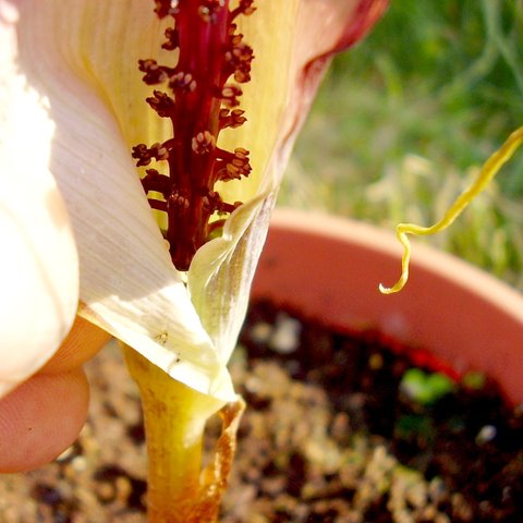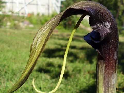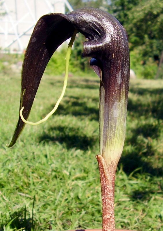 Arisema spec. "Gunung Tujuh" z Sumatry Arisema rosnąca na wysokości około 2400 m npm. Niedaleko jeziora Gunung Thuju (jezioro siedmiu gór): I ta sama roslinka kwitnąca już u mnie (3. lipca 2006):